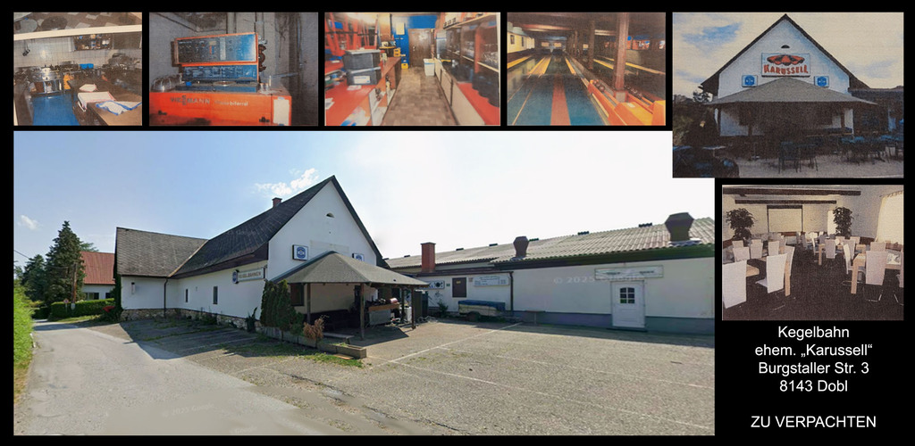Zur Vermietung gelangt ein großzügiges Gebäude mit herrlichem Ausblick über weststeirische Weinhänge am Muttendorfberg in Dobl. Das Objekt wurde jahrzehntelang als Kegelbahn und Pizzeria betrieben und sucht nun eine weiterführende Bestimmung.